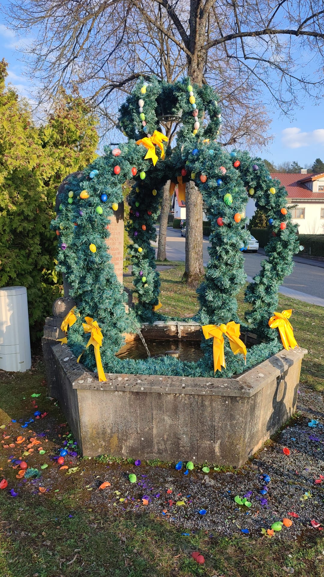 Der historische "Häuserbrunnen" wurde im Jahr 2012 liebevoll aus dem Dornröschenschlaf befreit und erstrahlt heute wieder in neuem Glanz. Die vorhandenen Sitzmöglichkeiten laden zum Verweilen mit Blick auf die Flur und unseren Ort ein.
